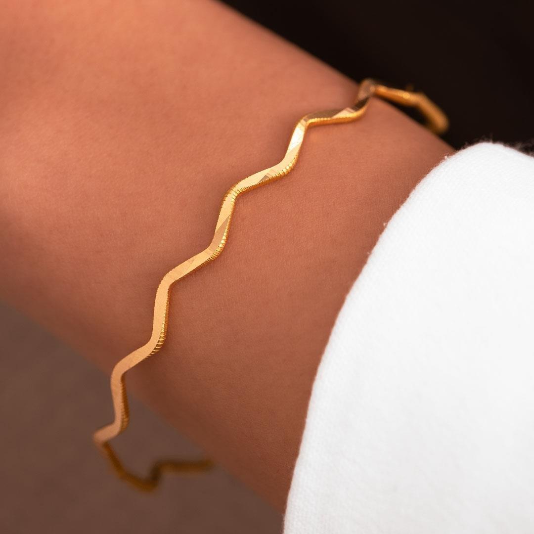 Zarafeti ve şıklığı bir arada sunan 10 Gram 22 Ayar Altın Zigzag Ajda Bilezik ile her anınızı özel kılın!