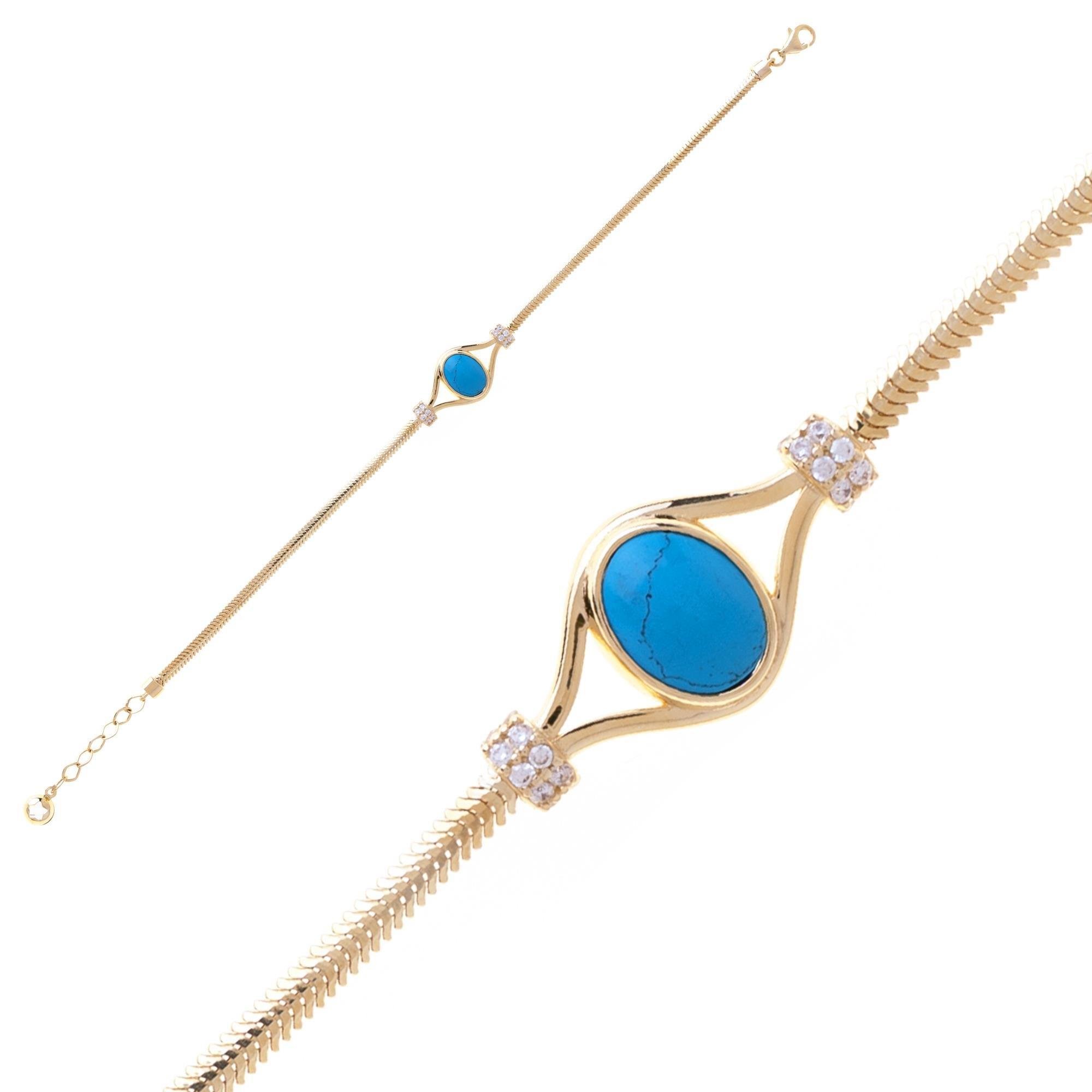 Şıklığı ve zarafeti bir arada sunan 14 Ayar Firuze Bileklik ile özel anlarınızı taçlandırın!
