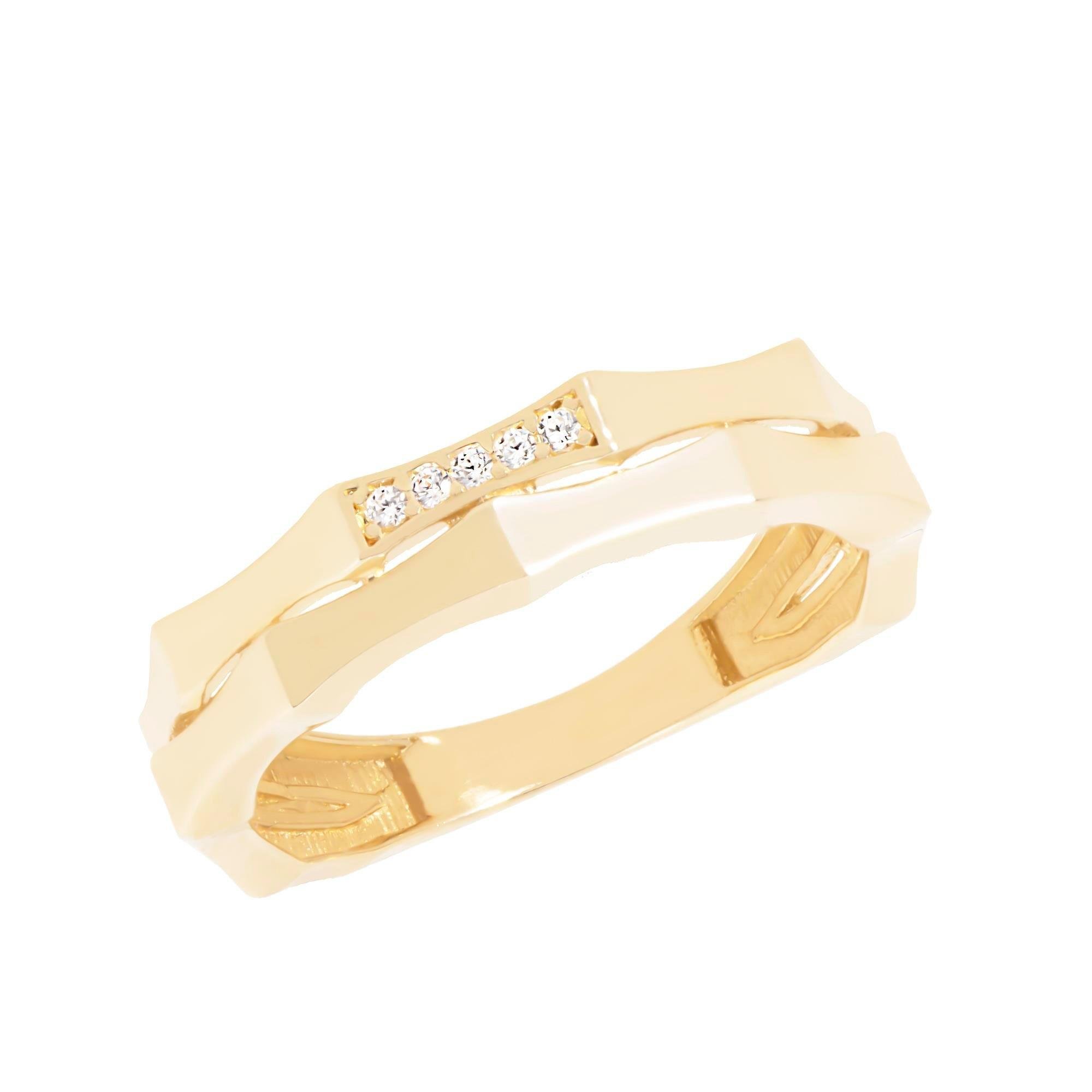 14 ayar altından üretilen bu yüzük, günlük kullanım için ideal olmasının yanı sıra özel günlerinize de ışıltı katmak için mükemmel bir tercihtir. Modern çizgileri ve estetik dokunuşlarıyla dikkat çeken bu yüzük, sevdiğinize anlamlı bir hediye olarak da sunulabilir.