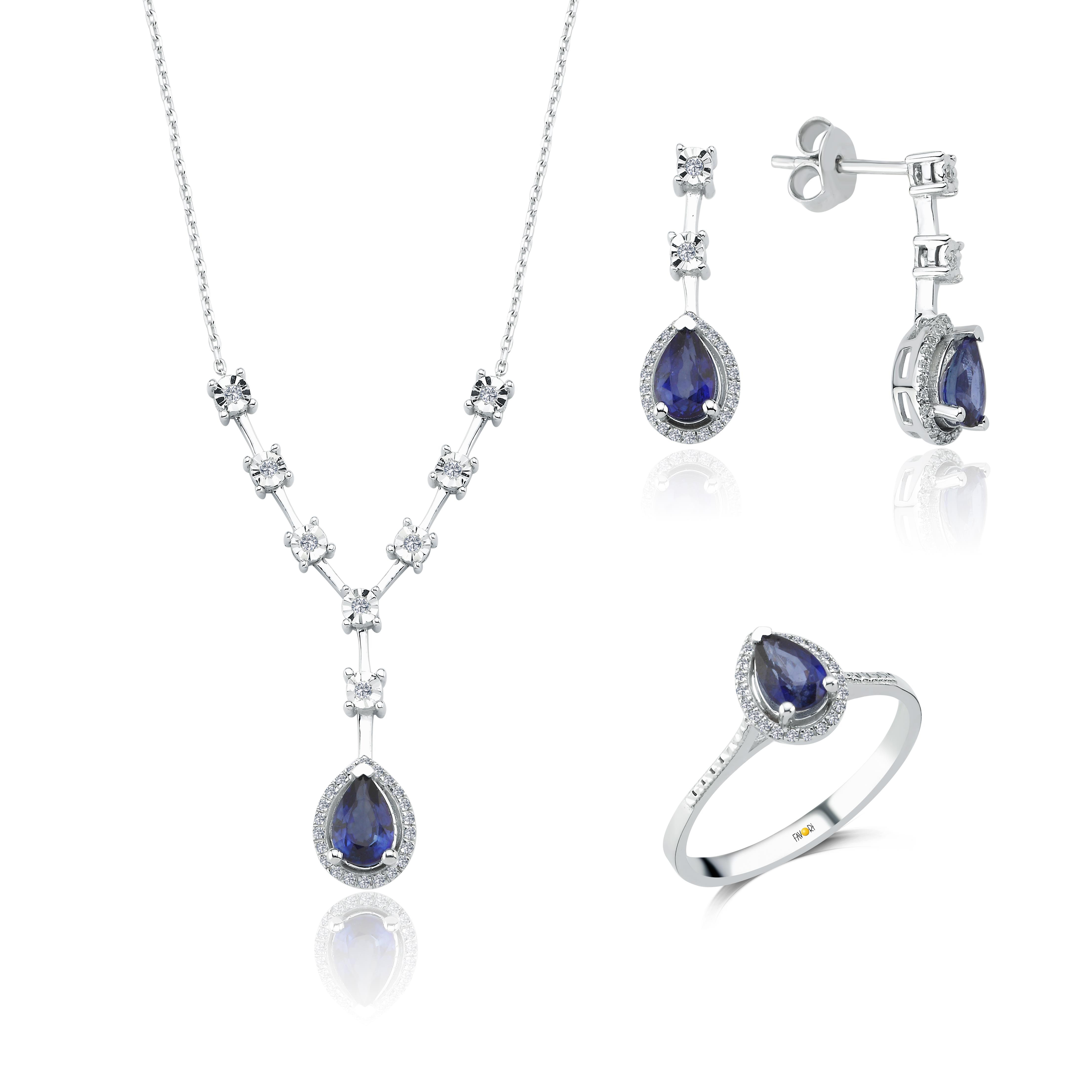 Hayallerinizdeki zarafeti yansıtan Pırlanta Safir Miniseti ile özel anlarınızı taçlandırın!