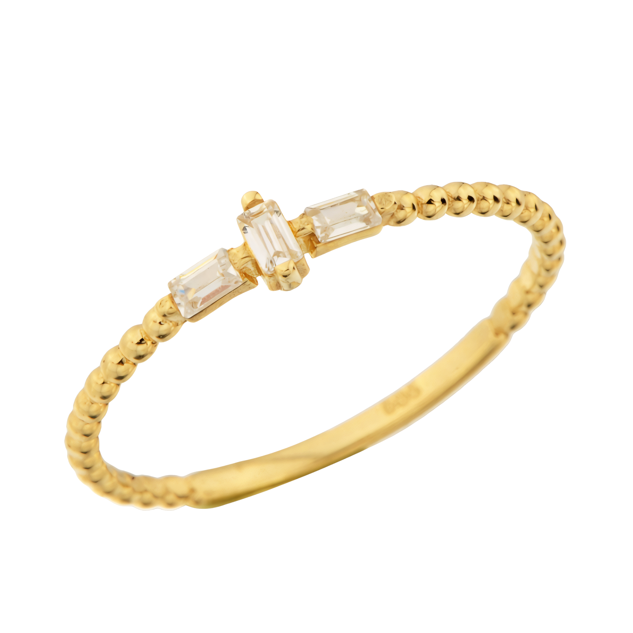 0,79 gram ağırlığındaki bu zarif üç taşlı model, her anınıza eşlik edecek bir ışıltı sunar. Özel günlerinize anlam katarak, hayat boyu saklanacak değerli bir armağan olarak sevdiklerinizi mutlu eder. 14 ayar altın kullanılarak tasarlanan bu yüzük, hem şıklığı hem de kalitesiyle dikkat çekmektedir.